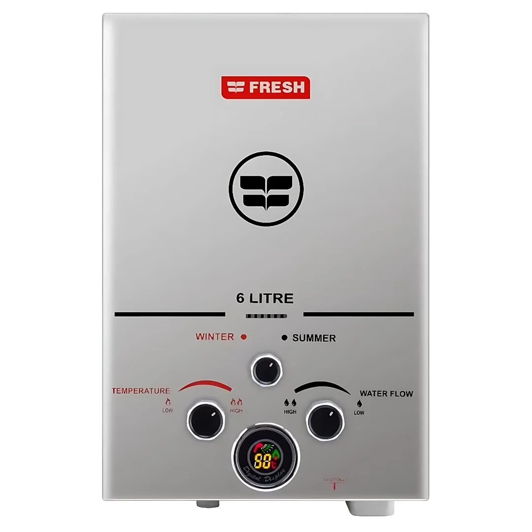 الماركة فريش Sub Color فضي الضمان ٣ سنوات Water Heater Type سخان مياه بدون خزان Power Source Type غاز Water Heater Capacity 5 الى 10 لتر |